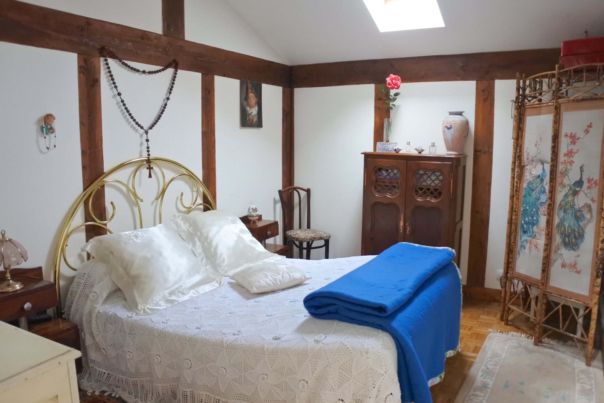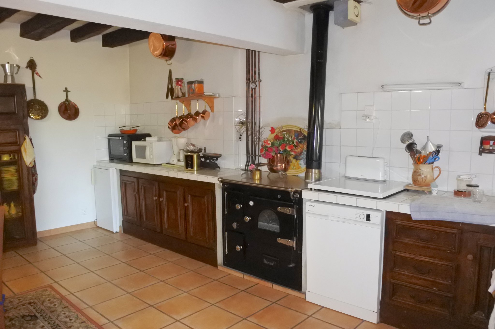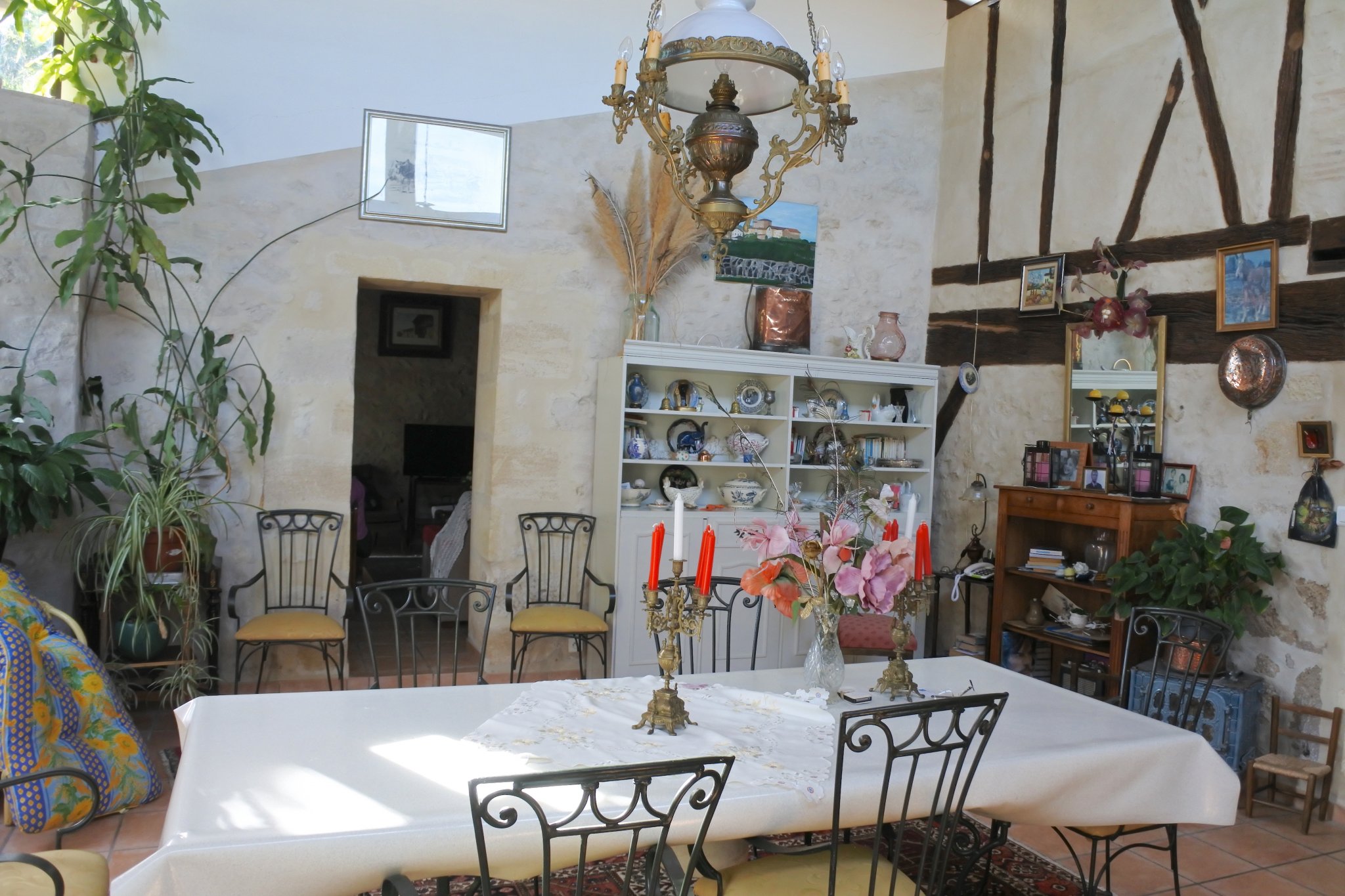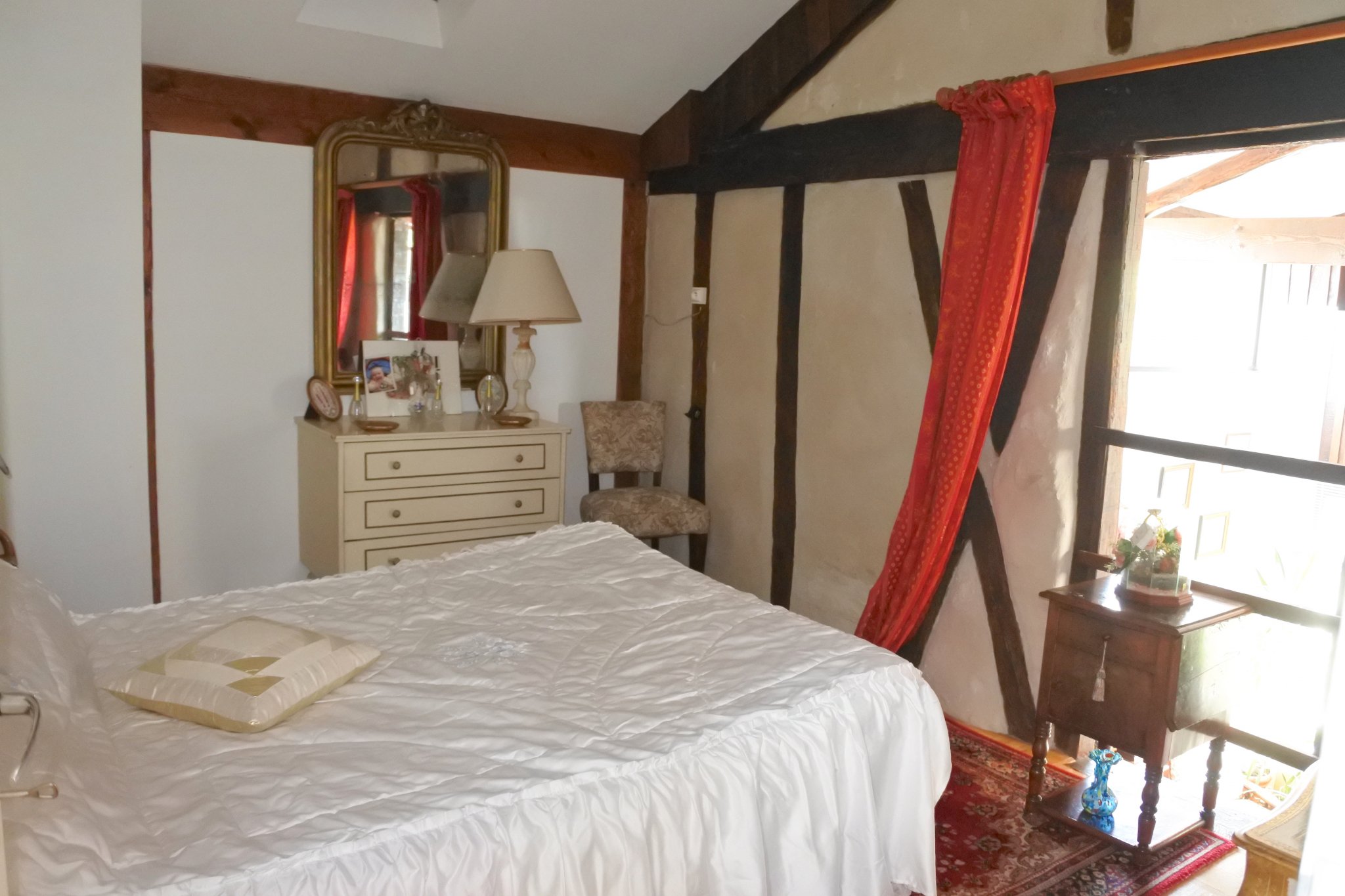 Maison en pierre et à colombages sur 2 niveaux composée d'un séjour 36 m2, pièce 23 m2 actuellement à usage de salon pouvant être transformée en 3e chambre, salle d'eau, cuisine/salle à manger 36 m2, 2e salle d'eau, cuisine d'été. A l'étage, 2 chambres 11 m2 et palier 10 m2 aménagé en chambre d'amis.
