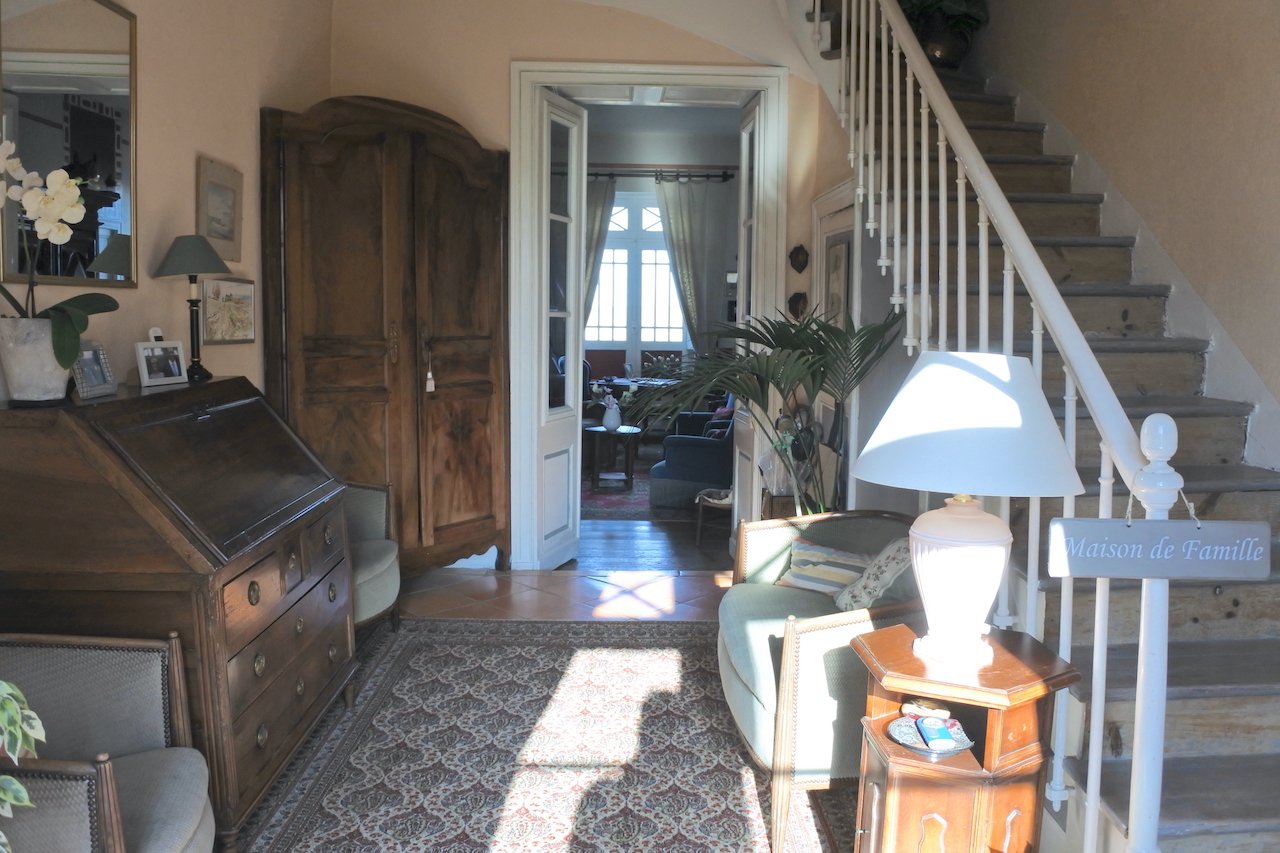 Maison de maître située en plein coeur du centre bourg. La maison s'ouvre sur une entrée traversante desservant salon, living et bibliothèque.