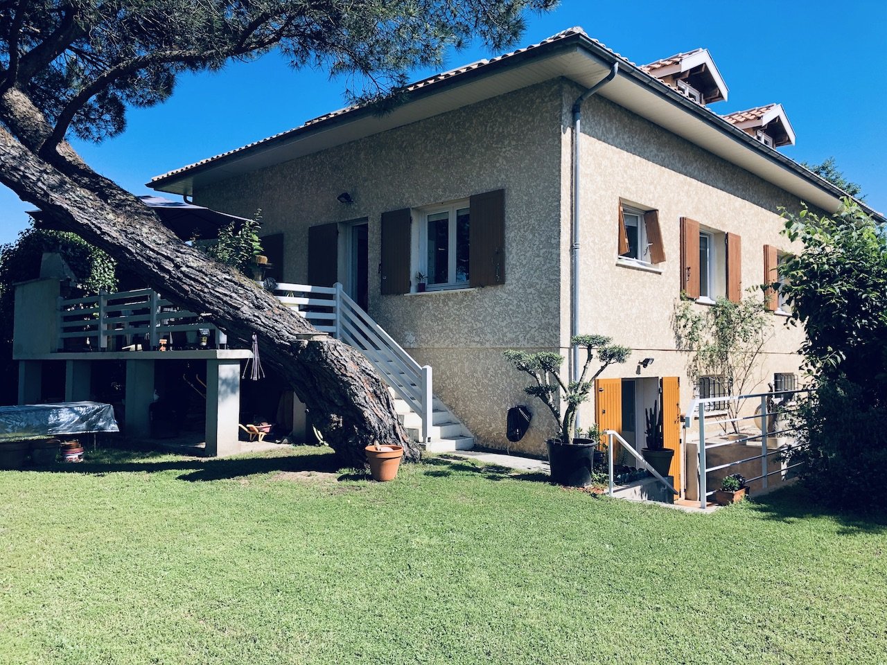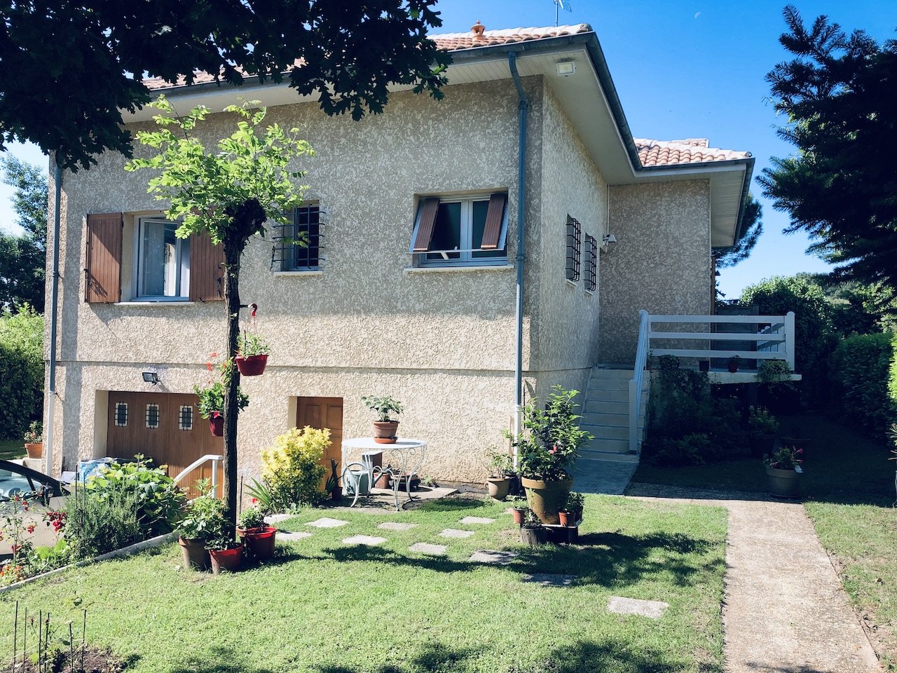 Belle maison familiale de 230 m2 sur 3 niveaux La maison se compose au RDC : d'une entrée, grande pièce à vivre avec cheminée, trois chambres et une salle de bain, toilettes, grande cuisine aménagée. Un balcon terrasse entoure les pièces de vie. A l'étage : une salle de jeu, deux chambres, une salle d'eau avec WC. Le rez de jardin est composé d'un appartement de 50 m2 avec une chambre. Un grand garage , une buanderie et un bureau complète ce plateau. La maison est sur une belle parcelle arborée sans vis à vis. 2 entrées séparées. Beaucoup de charme pour cet ensemble au calme, très proche du centre et de toutes les commodités, à visiter sans tarder.