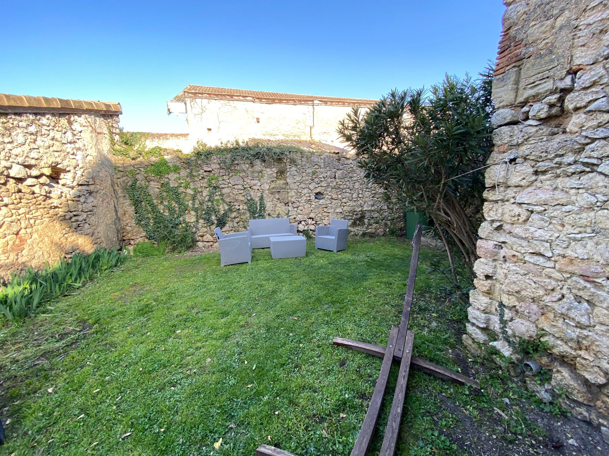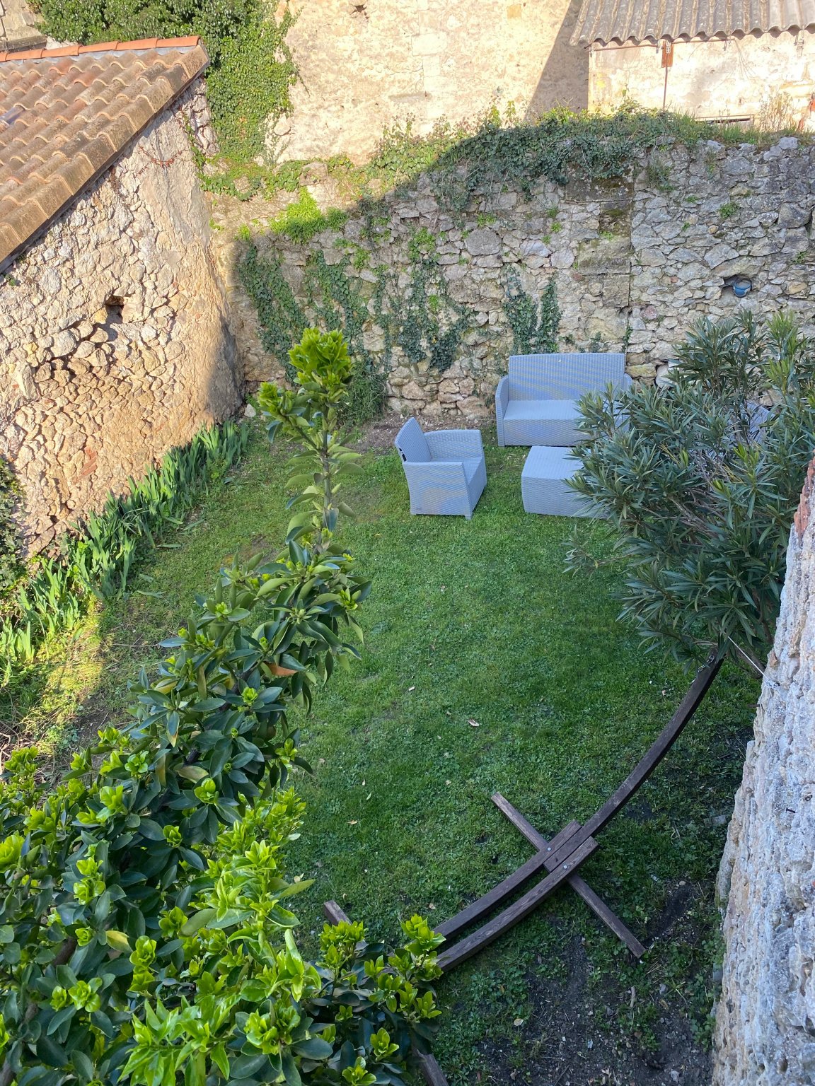 Très joli jardin intime de 145 m2 clos de murs de pierre.