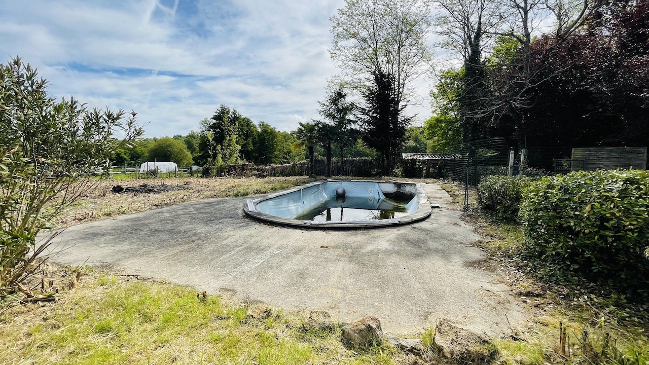 Travaux en cours : rénovation de la couverture. A rénover : plomberie, électricité, isolation, menuiseries, assainissement, aménagement intérieur, piscine.