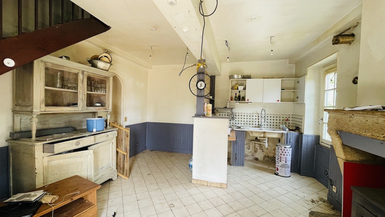 A 3,8km du péage de Langon sur la commune de Roaillan. Dans un ensemble immobilier de 4 habitations (pas de copropriété), maison en pierre de 166m2 à terminer de rénover sur une parcelle de 800m2.