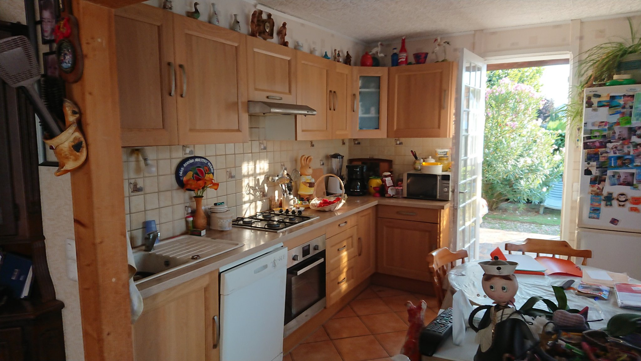 En exclusivité, maison de plain pied de 80 m2 composée d'une pièce de vie de 32m2, cuisine ouverte; 2 chambres, salle d'eau et cellier. Terrain de 1300m2 avec terrasse de 20m2.